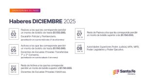 Cronograma de pago de haberes de diciembre a trabajadores provinciales