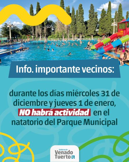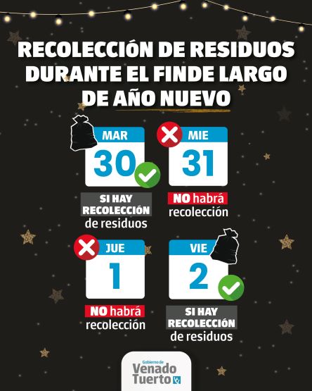 Este 31 de diciembre y 1 de enero, el Gobierno de Venado Tuerto dispondrá el siguiente esquema en la prestación de los servicios municipales.