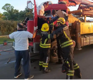 Un severo accidente de tránsito sacudió la tarde del jueves la Ruta Nacional n.º 33, específicamente en el kilómetro 628. El choque, que involucró a dos camiones, dejó a uno de los ocupantes atrapado entre los hierros retorcidos de su vehículo, requiriendo la intervención de los bomberos para su rescate.