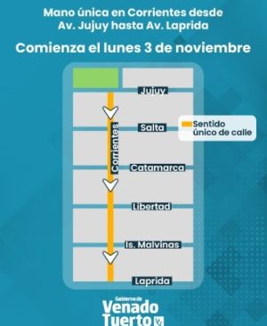 Sentido único de circulación en calle Corrientes (del 900 al 400).