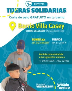 El proyecto impulsado por la Dirección de Vecinales municipal de cortes de pelo gratuito en los barrios de la ciudad, llevará el servicio de las Tijeras Solidarias al Villa Casey.