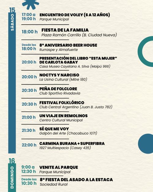 Un nutrido programa de propuestas presentará este fin de semana la ciudad de Venado Tuerto, comenzando este viernes con la Feria Circular Rotary, que se desarrollará de 13 a 20 en la Casa del Rotary Club Venado Tuerto (Casey 42). La actividad tendrá continuidad el sábado de 9 a 13.