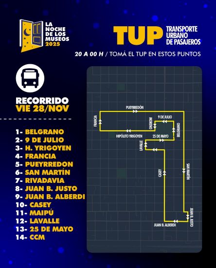 La Casa Museo Cayetano A. Silva se destaca como un punto central del evento, manteniendo su programación completa en ambos fines de semana, con actividades para todas las edades, exhibiciones históricas, proyecciones y propuestas interactivas. Además, el servicio especial de Transporte Urbano de Pasajeros (TUP), previamente anunciado para facilitar el recorrido, operará en las cuatro fechas reprogramadas, garantizando el acceso a todos los espacios participantes. La Noche de los Museos 2025, en su nueva configuración, promete ser una experiencia cultural enriquecedora y accesible para toda la comunidad, ofreciendo una oportunidad única para explorar el patrimonio y la historia de Venado Tuerto.