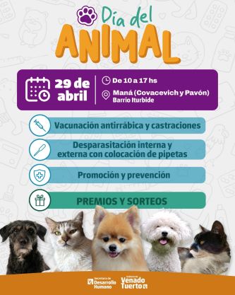 Como parte de las actividades de salud animal que llevará adelante el programa Orejas Verdes en barrio Iturbide (sede Maná), este miércoles 29 de abril habrá una jornada especial por el Día del Animal, que recuerda el fallecimiento del Dr. Ignacio Lucas Albarracín en 1926, fundador de la Sociedad Protectora de Animales y precursor de la Ley Nacional de Protección de Animales.