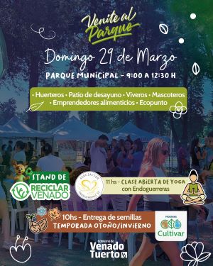 En el marco de las actividades programadas en el Parque Municipal por el “Venite al Parque”, el domingo 29 de marzo desde las 10 se hará la primera entrega de semillas de la temporada otoño-invierno 2026 del programa Cultivar.