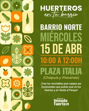Este miércoles 15 de abril, de 10 a 12, los vecinos del barrio Norte y aledaños podrán adquirir una variada oferta de hortalizas frescas, con convocatoria en la plaza Italia (Piacenza y Av. Dr. Luis Chapuis).