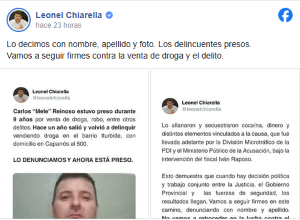 El intendente de Venado Tuerto volvió a escrachar con nombre, apellido y foto a un vendedor de drogas.