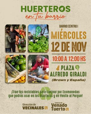 Este miércoles 12 de noviembre, de 10 a 12, los “Huerteros en tu barrio” llevarán toda su producción recién cosechada a la plaza “Padre Alfredo Giraldi” (Brown y España).