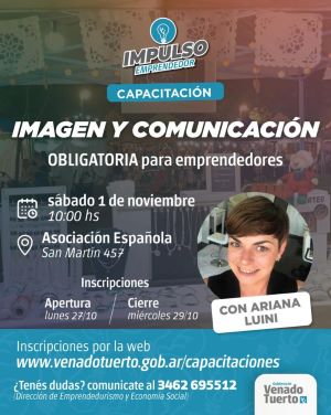 “Impulso Emprendedor”, el programa de la Secretaría de Desarrollo Productivo ofrece una capacitación gratuita, obligatoria para emprendedores: “Imagen y Comunicación”, a cargo de Ariana Luini.