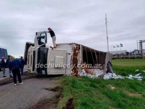 El siniestro, ocurrido en la tarde de este lunes, alrededor de las 18 horas, en un tramo de recta, involucró a un camión Volvo VM260 con acoplado que, por causas que se investigan, perdió el control y terminó volcado en el préstamo de la banquina.
