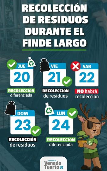 -La recolección de residuos domiciliarios se realizará con normalidad los dos días. El lunes será la correspondiente a residuos reciclables.