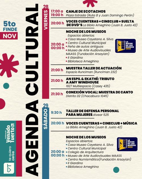 La Noche de los Museos Venado Tuerto 2025 se presenta como una oportunidad única para explorar el patrimonio cultural de la ciudad, mientras que el resto de la agenda ofrece opciones para todos los gustos, desde actividades recreativas hasta propuestas artísticas y musicales. Este fin de semana promete ser una celebración de la cultura en todas sus formas.