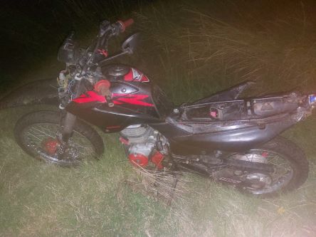 Moto abandonada en zona de pastizales