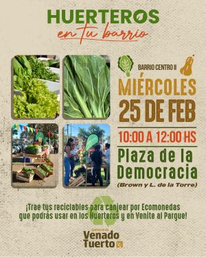 Una nueva jornada del programa “Huerteros en tu barrio” se desarrollará este miércoles 25 de febrero, para que los vecinos del Centro II y zonas aledañas puedan adquirir productos recién cosechados a precios convenientes.