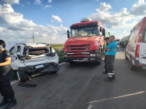 Un choque en cadena, ocurrido en la tarde del martes en el kilómetro 638 de la Ruta Nacional n.º 33, entre Venado Tuerto y Murphy, ha dejado como saldo una mujer hospitalizada y importantes daños materiales. El incidente, que tuvo lugar alrededor de las 16:50, involucró a un automóvil Chevrolet Tracker Turbo y a cuatro camiones con acoplado que circulaban en dirección a Rosario.
