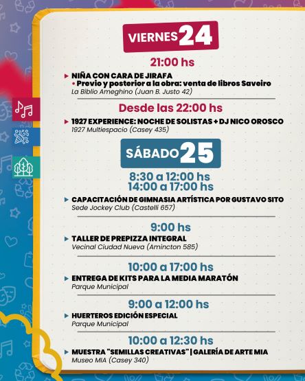 En este cuarto y último fin de semana del mes de abril, las actividades centrales serán el domingo con motivo del 142 aniversario de la ciudad. Este viernes, la actividad comenzará con “Niña con cara de jirafa”, una obra de drama destinada a jóvenes desde 13 años y público adulto. La presentación será en la Biblioteca Ameghino (Juan B. Justo 42), a las 21.